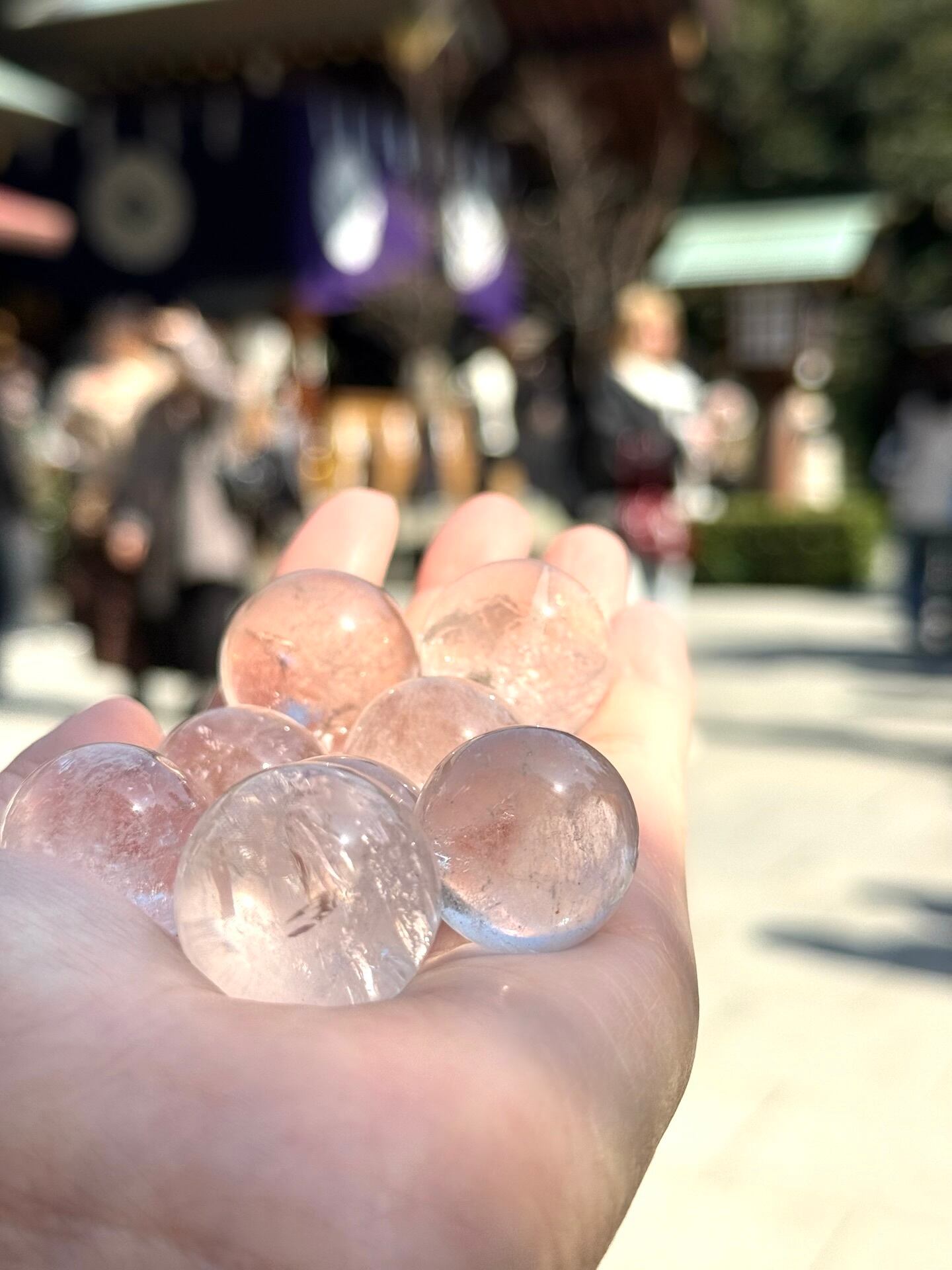 こちらは2026.3.17に東京大神宮に一緒に連れて行った石達です。(シェルの写真の中から20~23mmの水晶をお届けします。写真2枚目参照。)