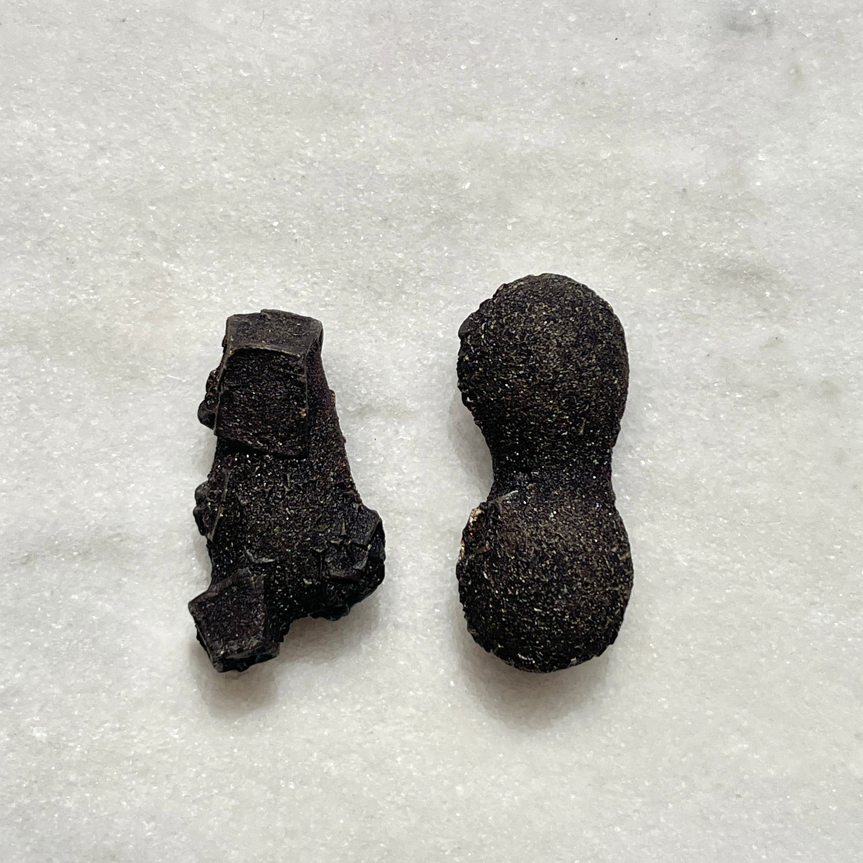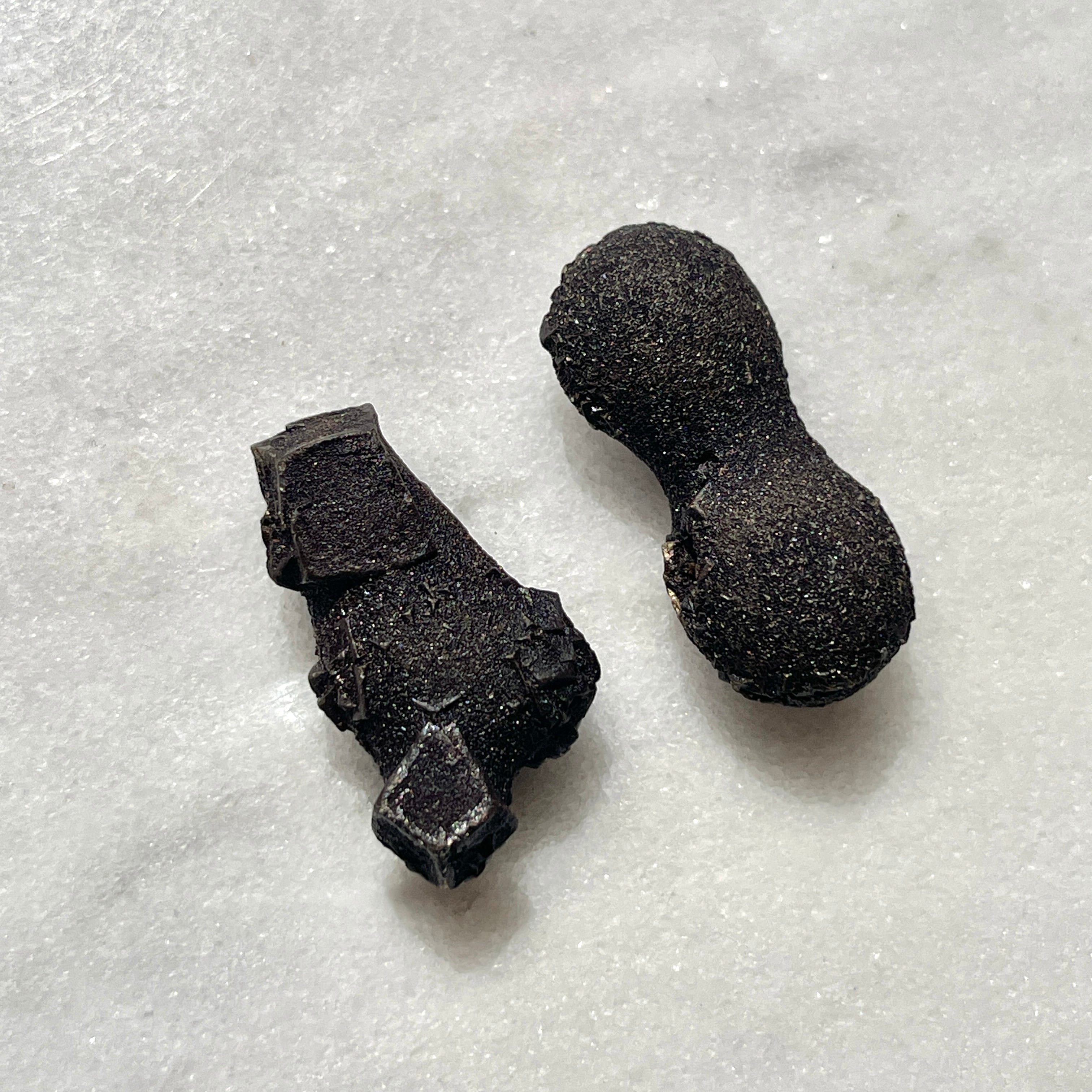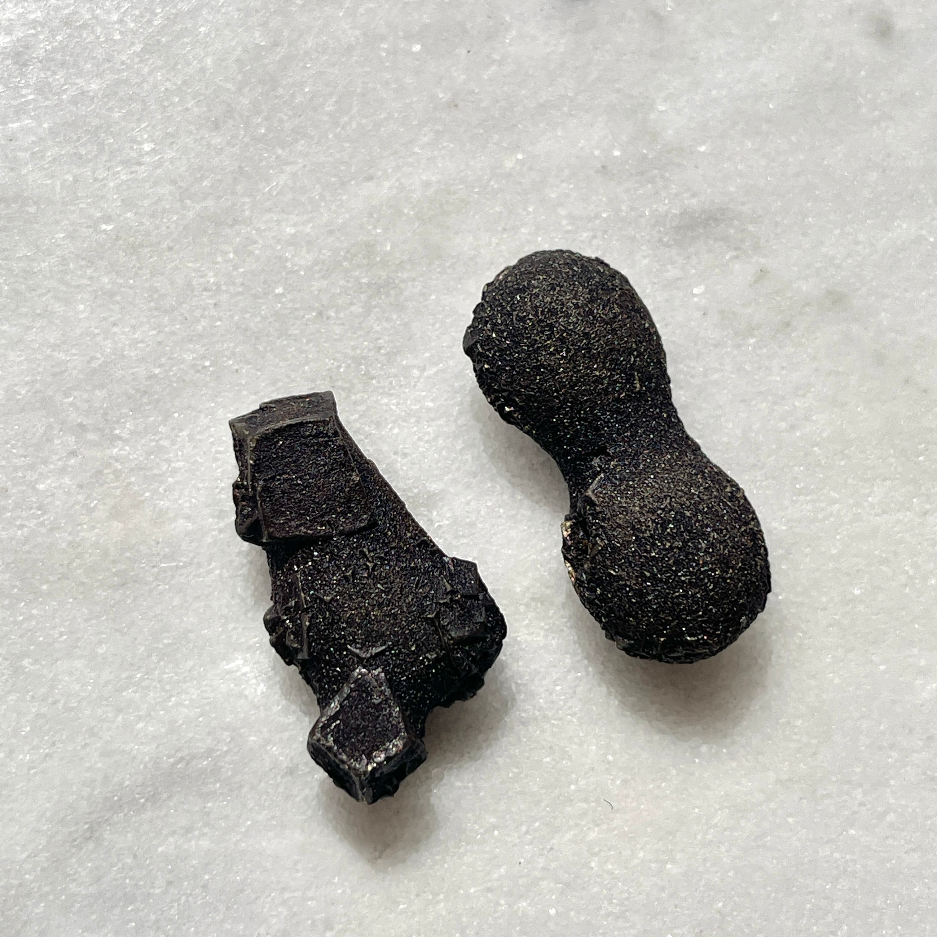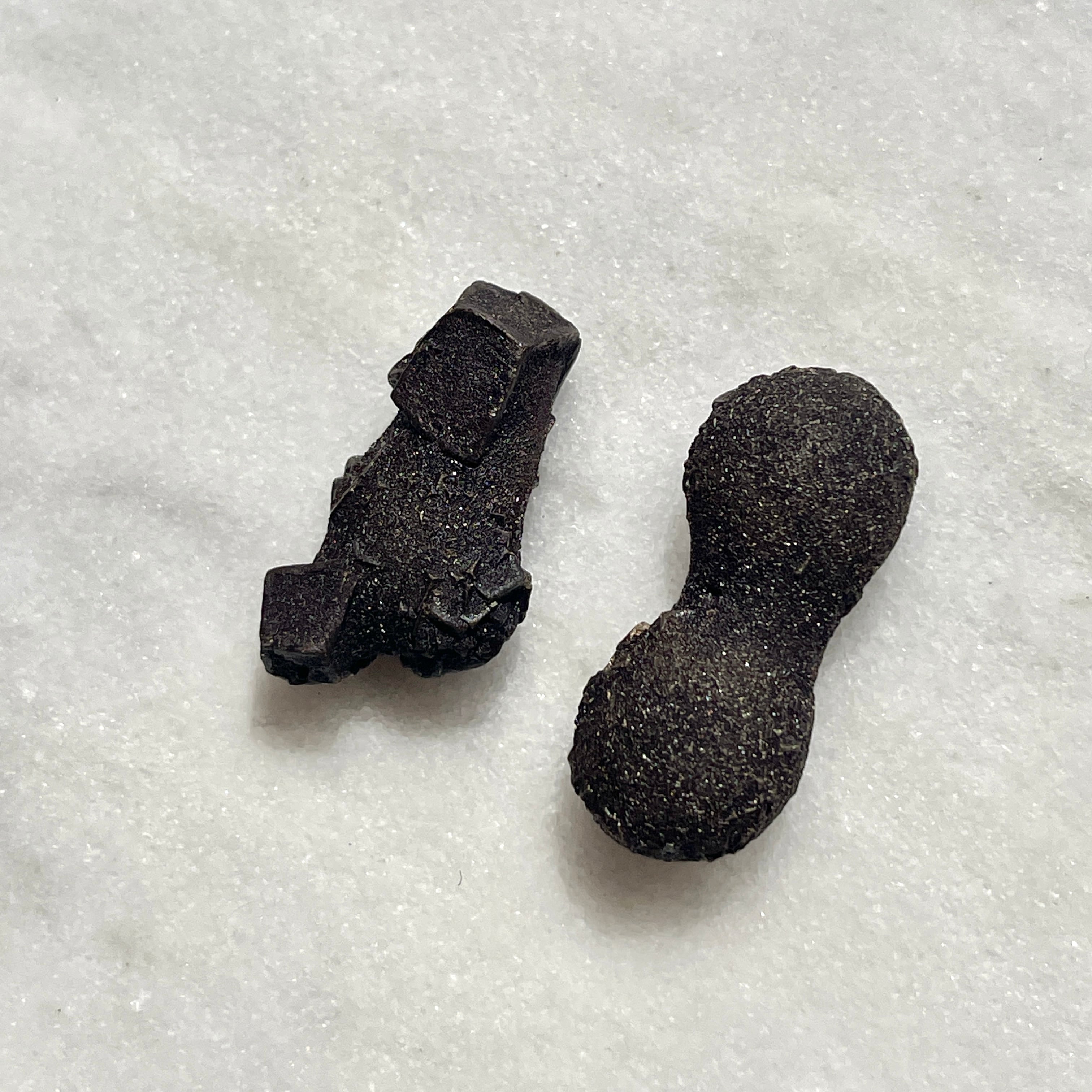 ゴツゴツしたほう(男石)を左手に、つるんとしたほう(女石)を右手に持って、二つをくっつけるように近づけたり、離したりしてエネルギーが引っ張り合うもわもわとした感覚を体感できたら、尾てい骨あたりに意識を持っていき、そのままスーッと両足の裏を通じてエネルギーが地面に流れていくところをイメージします。